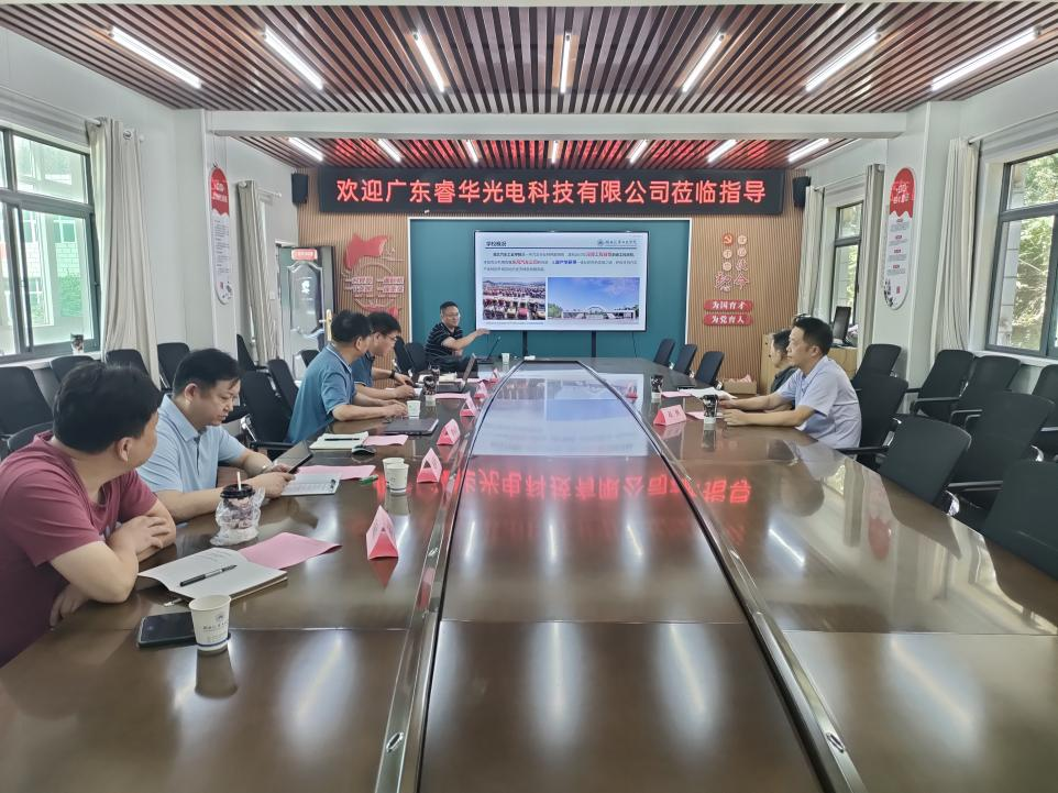 双方就科研项目、人才培养、成果转化等议题进行了深入探讨,并就如何结合广东睿华光电科技有限公司的技术优势推动产学研合作项目落地进行了细致研讨。