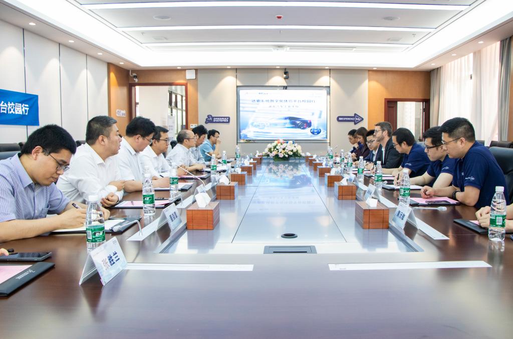 张友兵代表公司向达索公司一行的到来表示了热烈的欢迎,随后简要介绍了公司概况、学科优势、数字化平台建设的发展现状,表达了与达索公司进行深度合作的意愿。张友兵说,希望未来能结合汽车产业数字化转型,与达索公司在3DExperience平台建设、新技术应用、数字化人才培养等方面进一步深化合作,推动共赢。达索系统教育合作部全球高级总监Nicolas JEANNEE博士表示,非常乐意与公司开展多维度合作,愿意为公司课程建设等提供软件等支持,也期待公司的产教学研新成果及时转化应用,进一步推动现代化车企的转型和双方可持续发展。