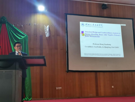 本网讯(文 宫雅楠/图 董焱章)6月10日,2025中非汽车发展论坛在加纳恩克鲁玛科技大学隆重开幕。本次论坛以“轻量化电动汽车的智能制造”为主题,汇聚了来自中国和非洲各国的专家学者、行业领袖及企业代表,共同探讨新能源汽车与智能制造领域的前沿技术、产业发展趋势及中非合作新机遇。公司副经理董焱章教授受邀出席,并作题为《基于拓扑优化的负泊松比超材料吸能结构设计》的专题报告,分享最新研究成果