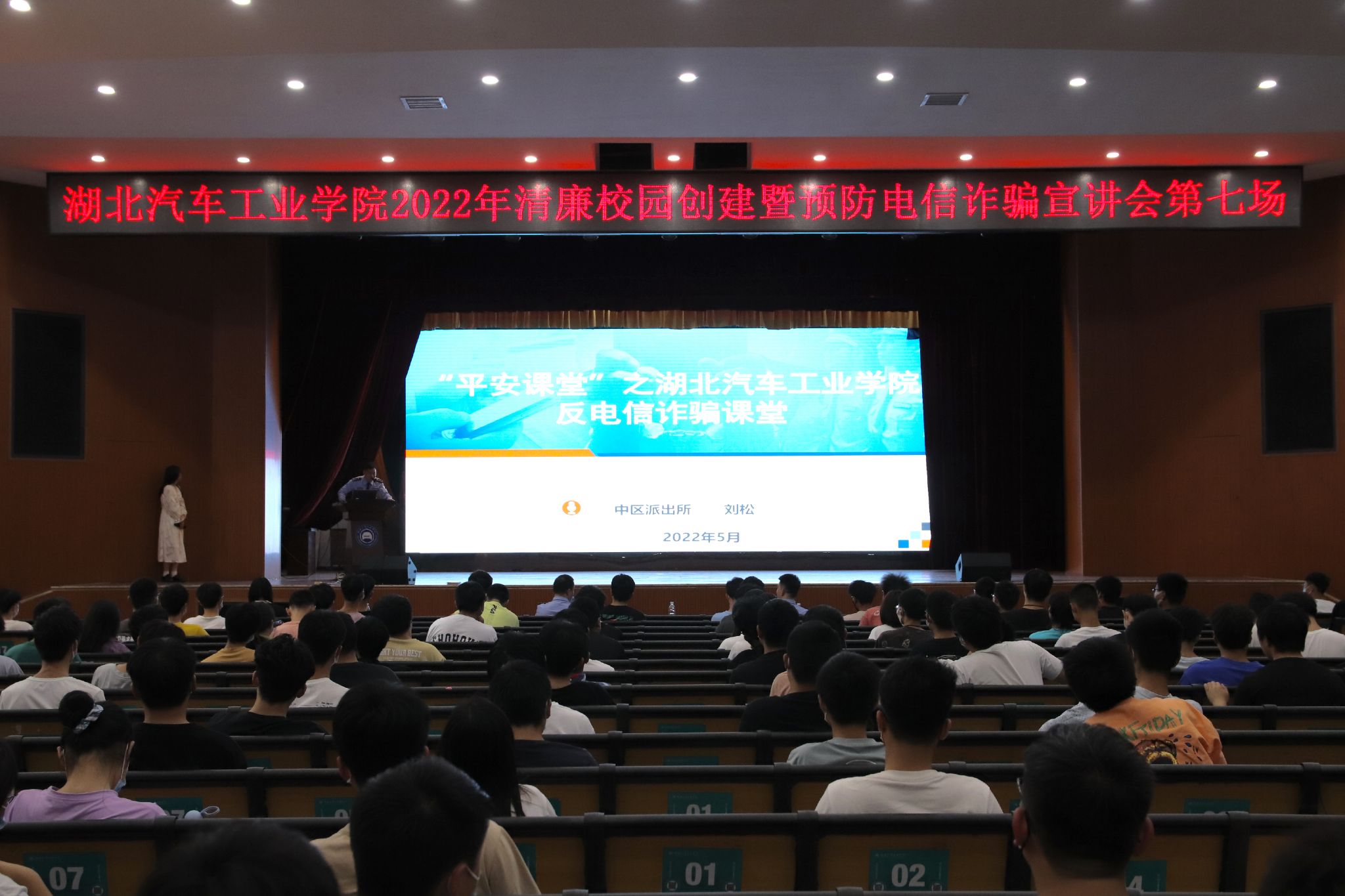 随后,市公安局东岳分局中区派出所副所长刘松从“电信诈骗的类型”、“电信诈骗的识别与防范”以及“典型案例”等方面为同学们宣讲了预防电信诈骗知识;发生在同学们周边的诈骗案例让人警醒深思。东岳分局防电诈宣讲团的警官还为同学们发放了防范电信诈骗宣传资料。活动最后,校保卫处向同学们通报了本学期公司发生的电信诈骗典型案例,警示同学们时刻保持防范意识。