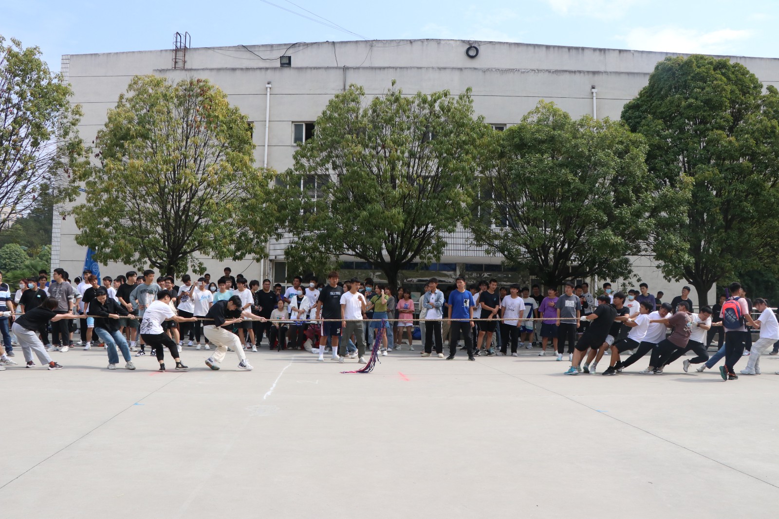 为积极响应校庆五十周年的号召,培养员工们的集体荣誉感,增强员工体质,同时为了丰富国庆期间老员工校园生活,10月1日至2日,bw必威西汉姆联官方网站在网球场举办了“贺校庆、展风采、凝心聚力”为主题的拔河比赛,辅导员李键雯、甘甜及22级全体新生参与了此次活动。