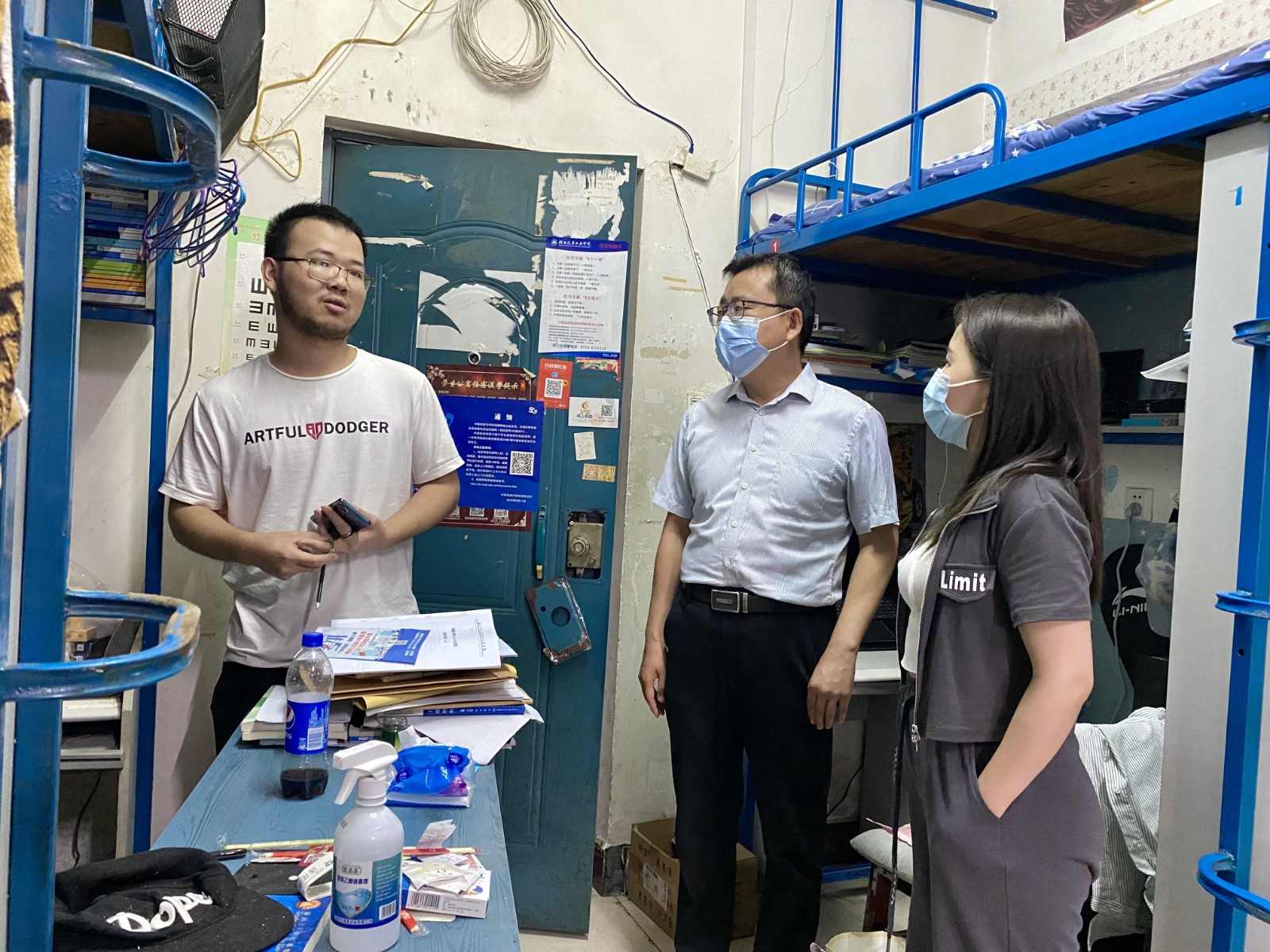 为学习贯彻习近平新时代中国特色社会主义思想主题教育要求,切实抓好“平安校园”建设工作,5月17日下午bw必威西汉姆联官方网站分党委书记杨亚会深入员工宿舍开展专题调研,学工办全体辅导员陪同调研。
