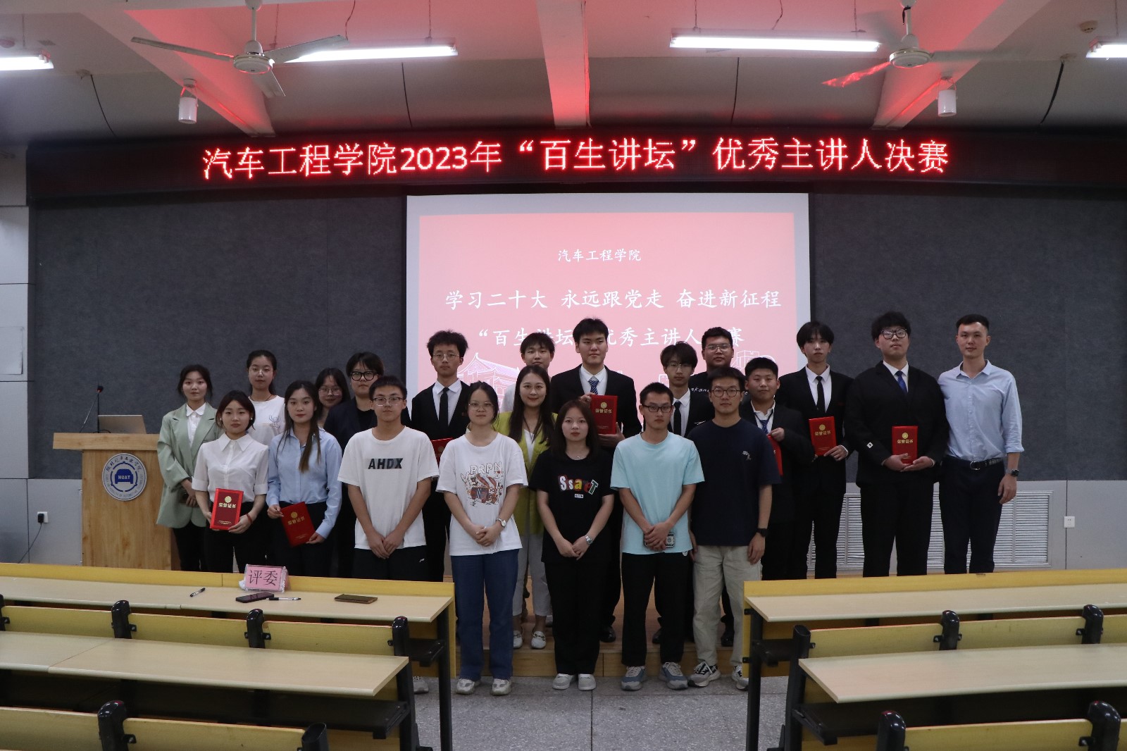 5月21日晚,bw必威西汉姆联官方网站于6113教室举行“学习二十大 永远跟党走 奋进新征程”百生讲坛优秀主讲人院级决赛。公司分团委书记李雅琨、往届比赛优秀选手及22级全体同学参加了此次活动。
