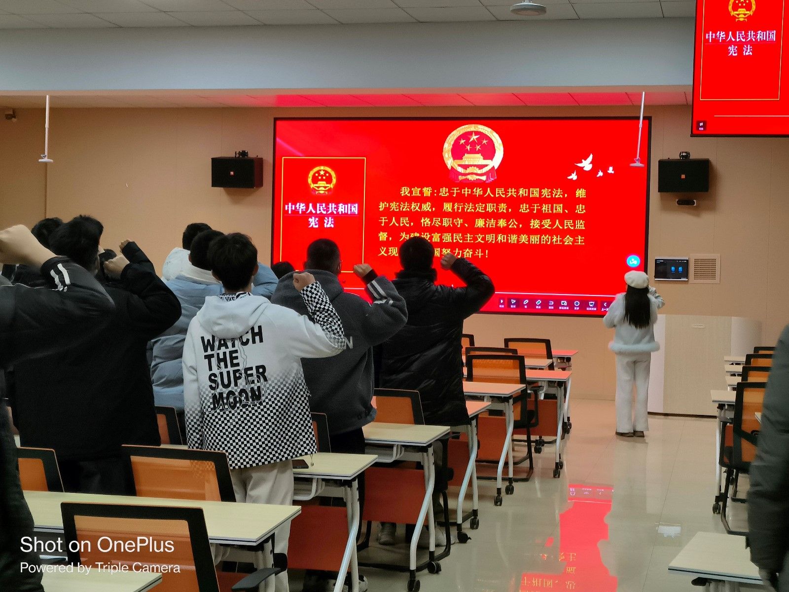 在各班主任、辅导员的带领下,全体员工面向誓词,紧握右拳,庄严宣誓,宣誓结束后,车辆223班的鲁志峰同学感慨道:“通过此次活动,增强了我作为一名老员工的使命感与责任感,在今后的学习中更是要坚定信念,牢记使命,时刻弘扬宪法精神,厚植爱国主义情怀,成为宪法最坚定的捍卫者、弘扬者和践行者”。