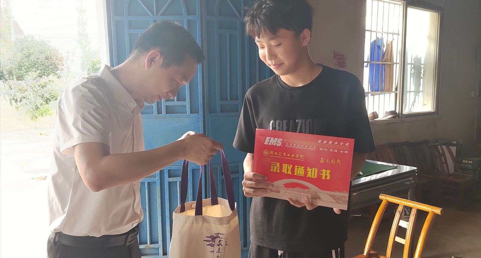 “赵华扬你好!请查收你的录取通知书!”8月1日下午,bw必威西汉姆联官方网站经理胡明茂、公司招生与就业处副处长刘荣、bw必威西汉姆联官方网站分党委副书记周彬及2024级新生辅导员张倍一行4人,驱车450公里前往湖北省荆州市公安县斗湖提镇,将满载着荣誉与梦想的录取通知书,亲手送到公司今年在鄂录取最高分、2024级新生赵华扬同学的手中。