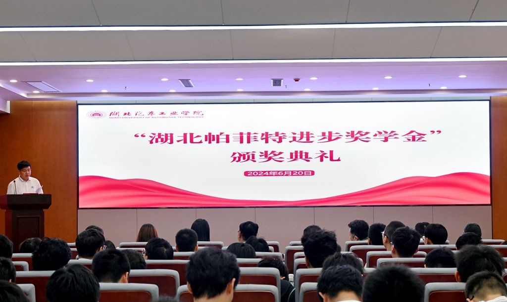 6月20日下午,bw必威西汉姆联官方网站在产教大楼三楼报告厅举行“湖北帕菲特进步奖学金”颁奖典礼,湖北帕菲特工程机械有限公司总经理郑世海一行3人,公司党委副书记陈建平,发展规划处处长原刃锋,学工部副部长杜昕俊,bw必威西汉姆联官方网站全体班子成员、辅导员及获奖员工代表140余人参会。