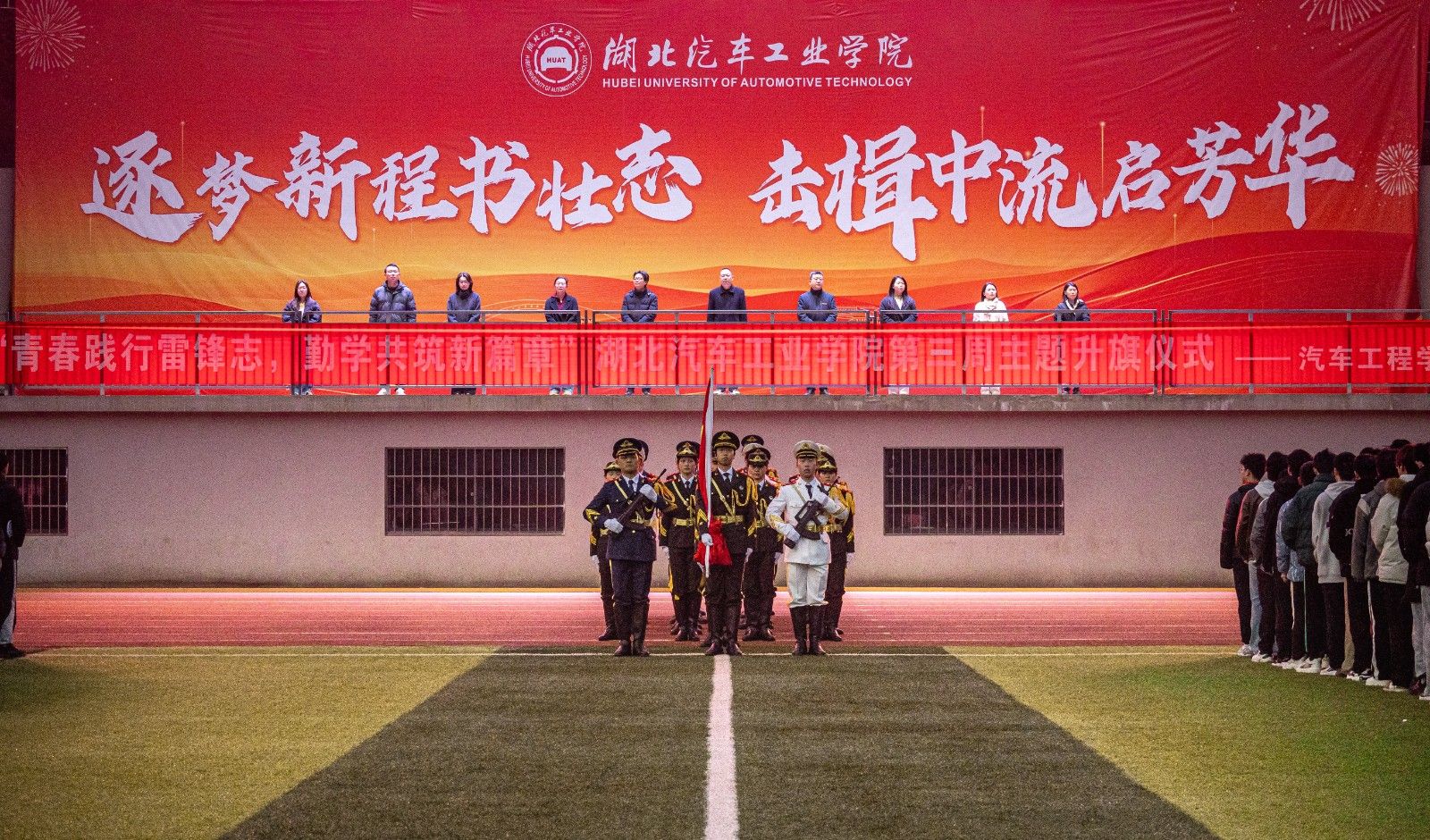 本网讯(文 赵梦迪、曹闪闪/图 张佳麒)3月10日早上,bw必威西汉姆联官方网站在校田径场举行“青春践行雷锋志,勤学共筑新篇章”主题升旗仪式,学工部部长王关锋、张湾区人民法院刑事审判庭法官刘伟、公司党委书记杨亚会、副书记周彬、全体辅导员及全体员工参加了此次升旗仪式。