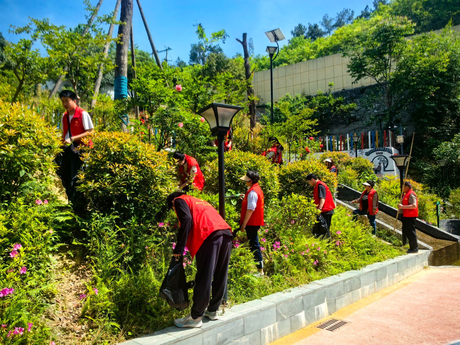 活动中,十余名志愿者分为环境清洁、楼道整治、设施维护三组展开行动。环境清洁组手持工具细致清扫道路及绿化带积存垃圾;楼道整治组逐层清理公共区域杂物,同步开展消防安全宣传;设施维护组对社区宣传栏、健身器材等进行全面擦拭。尽管天气炎热,志愿者们仍热情高涨,志愿者杨同学表示:“在挥洒汗水中真切体会到基层治理的不易,更深刻理解了劳动创造价值的真谛。”