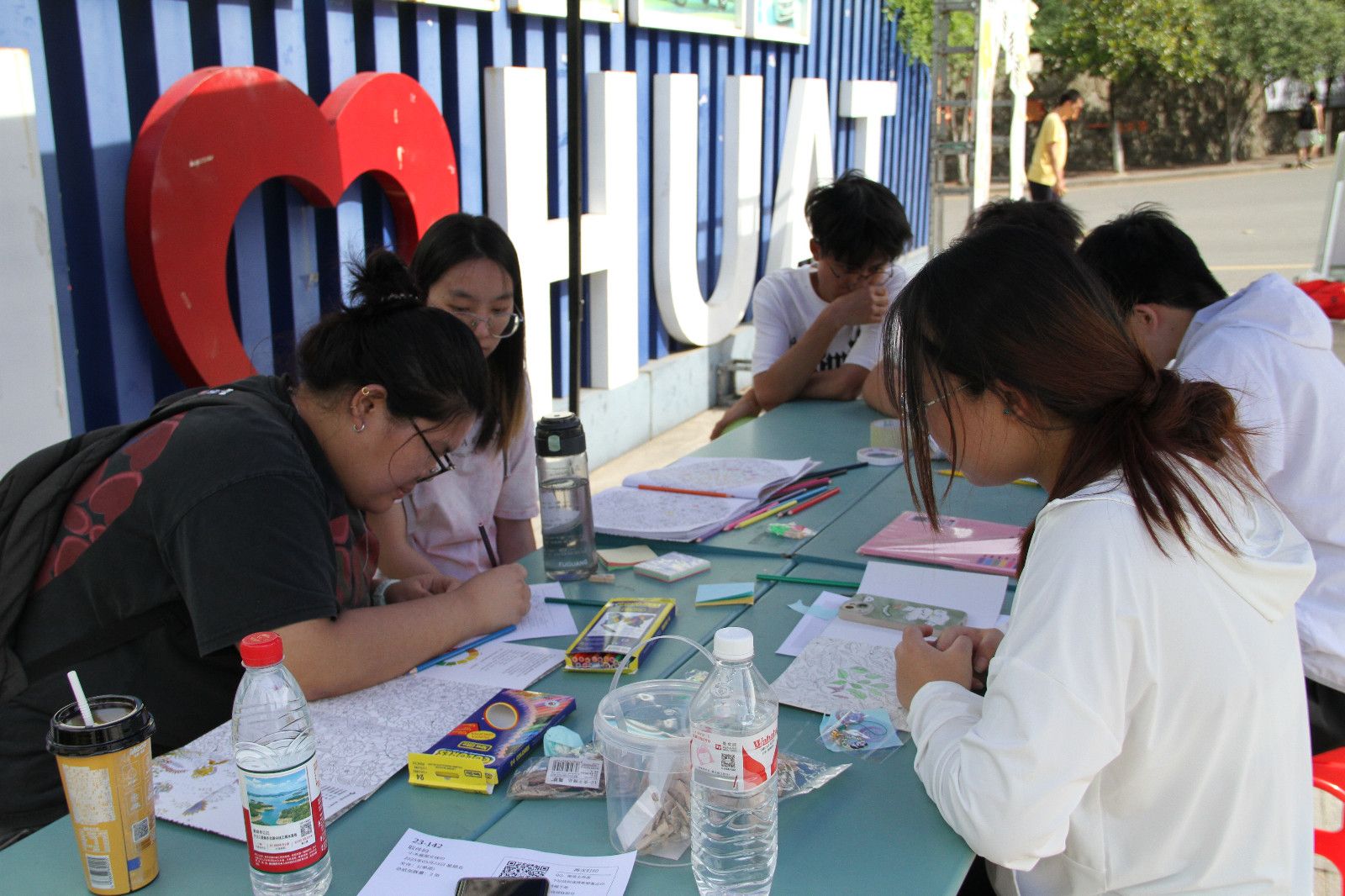 活动现场共设夹球跑、跳格子、套圈及涂色四大体验区,参与者在完成趣味挑战后可获得印章,并凭集章数量兑换精美礼品。在夹球跑项目中,参与者两两一组背靠背运送气球,默契配合中传递欢乐;跳格子区域里,师生单脚跳跃重温童趣,专注的步伐踏走烦恼;减压涂色区提供自由创作空间,缤纷色彩抚平浮躁心绪;套圈挑战则让参与者在精准投掷中收获成就感。