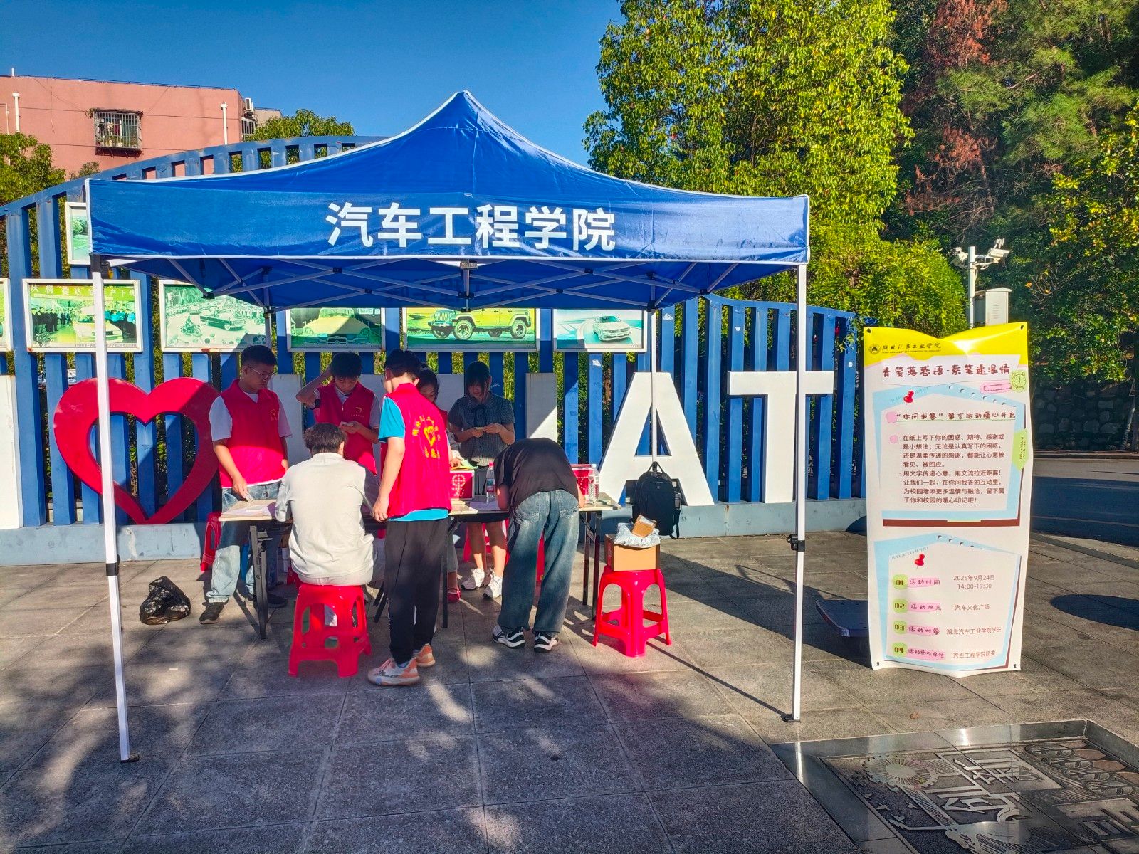 9月24日下午,bw必威西汉姆联官方网站在汽车文化广场设置了“青笺书写区”“素笔答疑台”和“温情打卡墙”,为25级新生提供了一个倾诉与倾听的温暖空间。老生们以“过来人”身份解答学业规划、宿舍关系等困惑,活动累计回收问答卡百余份。