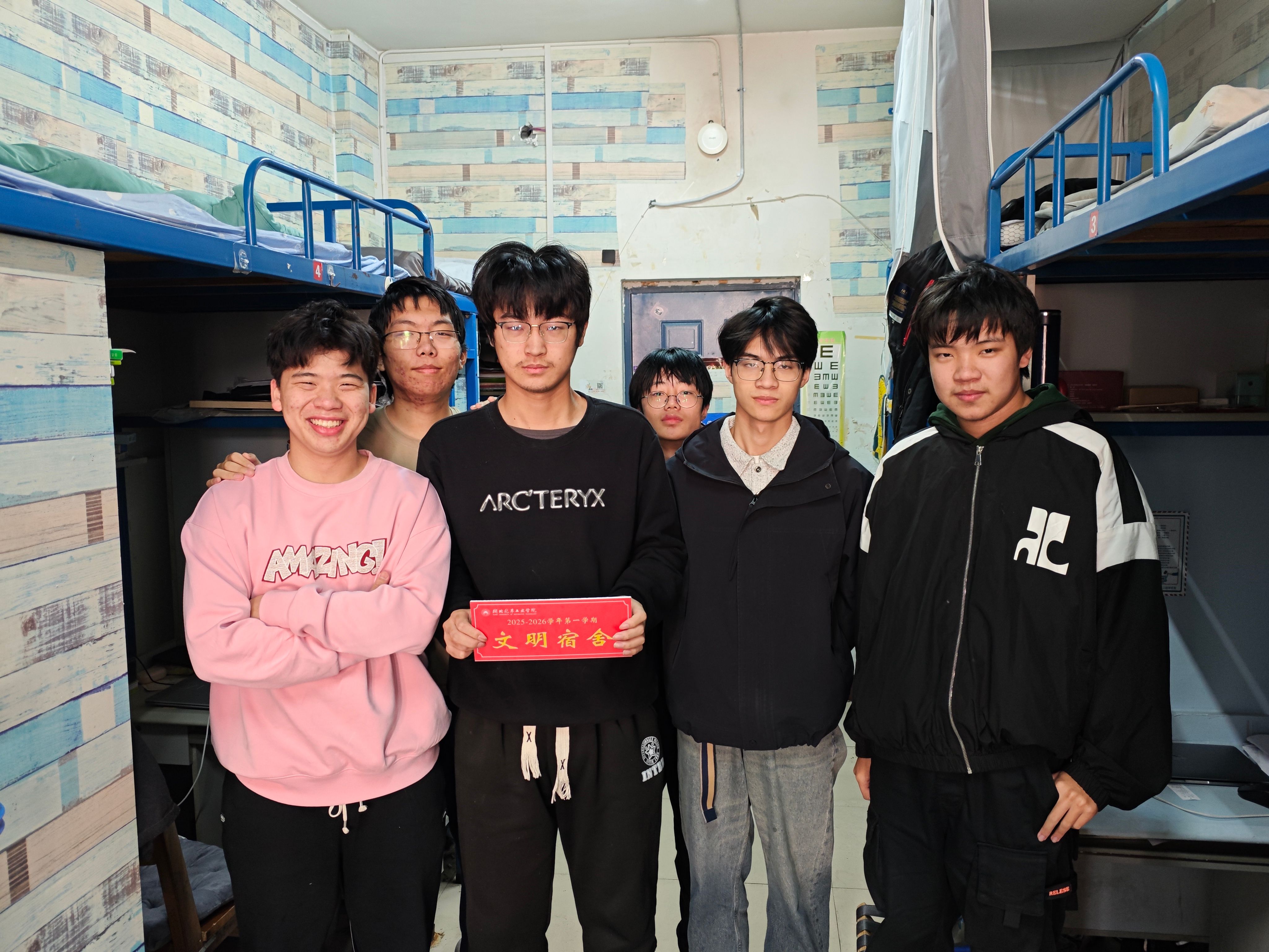 活动中,辅导员王裕与同学们共同为文明宿舍挂牌。王裕强调宿舍是“第二个家”,鼓励获奖宿舍发挥模范作用,带动更多宿舍共同进步。