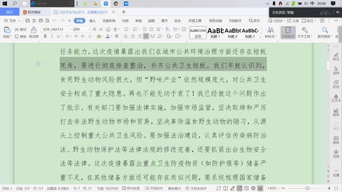 各班团支书主持活动,通过视频观看学习了习近平总书记关于生物安全、公共卫生安全重要论述文件,加深了同学们对生物安全的相关认知对公共卫生的重视,同时要求同学们做到坚决革除滥食野生动物的陋习,呼吁同学们警示身边亲属朋友严禁滥食野生动物,注重个人行为保护公共卫生环境。活动还组织同学们观看了国家安全宣传片和《当监察法遇上孙悟空》,通过视频让员工更好的了解国家安全的相关知识,明辨各类有害国家安全的不正当行为,树立共同维护国家安全的意识,普及了同学们国家安全的相关法规加强了同学们的法律观念。最后,各班分别开展了加强公共卫生安全的相关问答交流环节,通过问答、分享、思考来提高大家的公共卫生安全意识,也极好地加强了班级凝聚力的提升。部分同学还结合疫情期间的切身经历分享交流了自己的防护防控小知识,严谨又活泼的氛围让整个团日活动充满朝气。