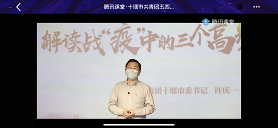团课由十堰市市委书记许庆一担当主讲人,十堰市各校员工齐聚腾讯课堂聆听受讲。团课开始前,许庆一邀请全体人员起立,歌唱共青团。随后分别详细解读了“青年担当”、“制度自信”、“人类命运共同体”三个战“疫”中的高频词。在青年担当的解读当中,书记强调,90后、00后不只是有一身标签,在疫情来临时,他们也可以是披荆斩棘的战士。通过“一句话”、“一杯咖啡”、“一首歌”所展开的故事,展示了当代青年勇担重任的责任意识和无私奉献的志愿情怀。在制度自信的解读当中,书记用“超高的行动效率”和“强大的组织能力”赞美了中国面对疫情时的镇定与团结。不仅向世界展示中国强大的号召执行力,同时也在一定程度上增强了同学们的民族自信心。新冠肺炎疫情的再次发生,人类是一个休戚与共的命运共同体。习近平总书记在与联合国秘书长古特雷斯通话时表示:“国际社会必须树立人类命运共同体的意识,守望相助,携手应对风险挑战,共建美好地球家园。”而市委书记解释“人类命运共同体”时清楚表示:人类命运共同体是指在追求本国利益时兼顾他国,合理关切,是在追求本国发展时促进各国共同发展,是你中有我,我中有你,是同呼吸、共命运。命运共同体在战“疫”过程中一个不可或缺的概念,在团课最后书记鼓励青年员工关注国家疫情动态发展,坚定民族自信心。