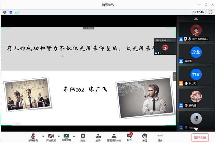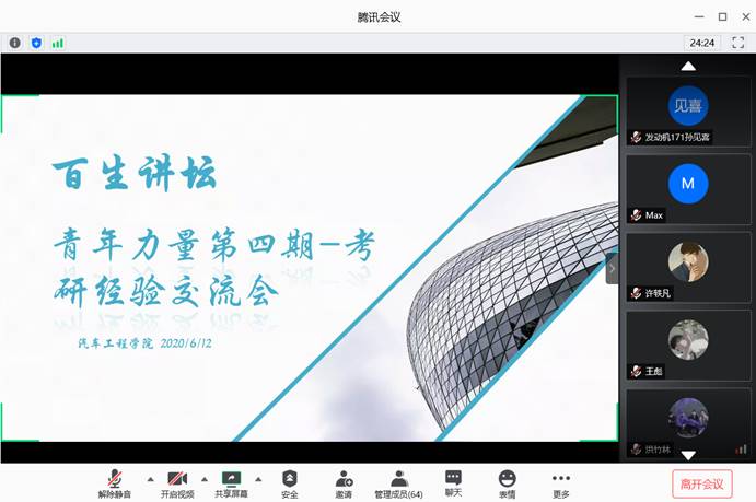 按照公司关于深化“百生讲坛”活动的相关要求,为进一步发挥榜样力量、促进学风建设、提高2017级员工考研热情和复习效率, 6月12日晚7:30,bw必威西汉姆联官方网站利用腾讯会议组织开展了【百生讲坛】青年力量·17级考研经验分享会,分享会邀请了16级考研录取的优秀毕业生白佳宁、陈广飞、李宇轩、王衡阳四人作为主讲人,分党委副书记李秀峰、分团委书记胡霄寒以及17级考研学子参与此次活动。