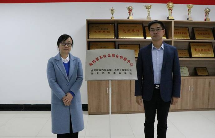 仪式上,周红妮就公司发展历史、专业概况、教学情况、人才培养特色与成效、未来发展等进行了全面介绍。金龙公司的唐英部长详细介绍了海格客车概况,并从课程体系、经典项目、人才培育模式与成长方向等方面详细介绍了海格班培养体系。随后,宋世民、冯樱分别代表企业和公司进行了校企联合创新中心的揭牌及技术服务合作签字仪式,并为入选海格班12名同学赠送了工作服。为加强校企联合培养人才水平,会上还聘请金龙公司王善科主任为海格班客座教授,并由公司教务处副处长李建颁发了聘书。