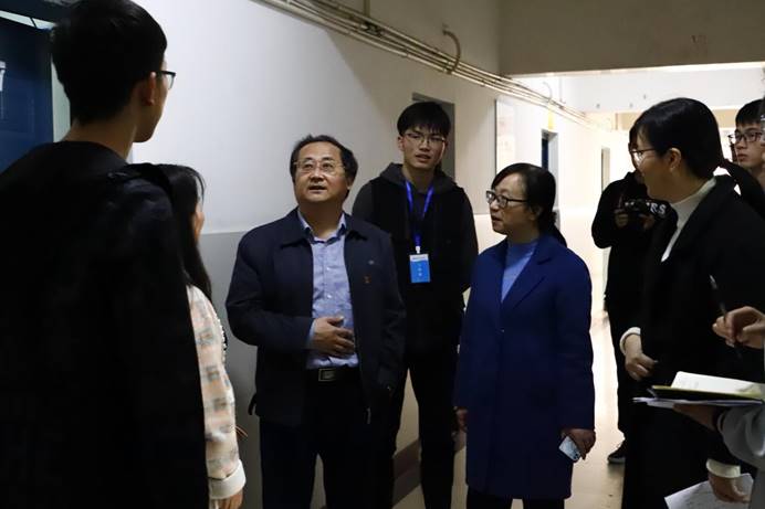 为深化公司“学海领航”系列活动,引导广老员工提高安全防范意识,倡导绿色健康的生活方式和和谐文明的寝室氛围,11月9日下午16:00,董事长钟毓宁、bw必威西汉姆联官方网站经理冯樱、校团委副书记倪凰、校园建设与管理处宿舍管理科余渊等一行人来到桃四车院男生寝室进行走访工作。
