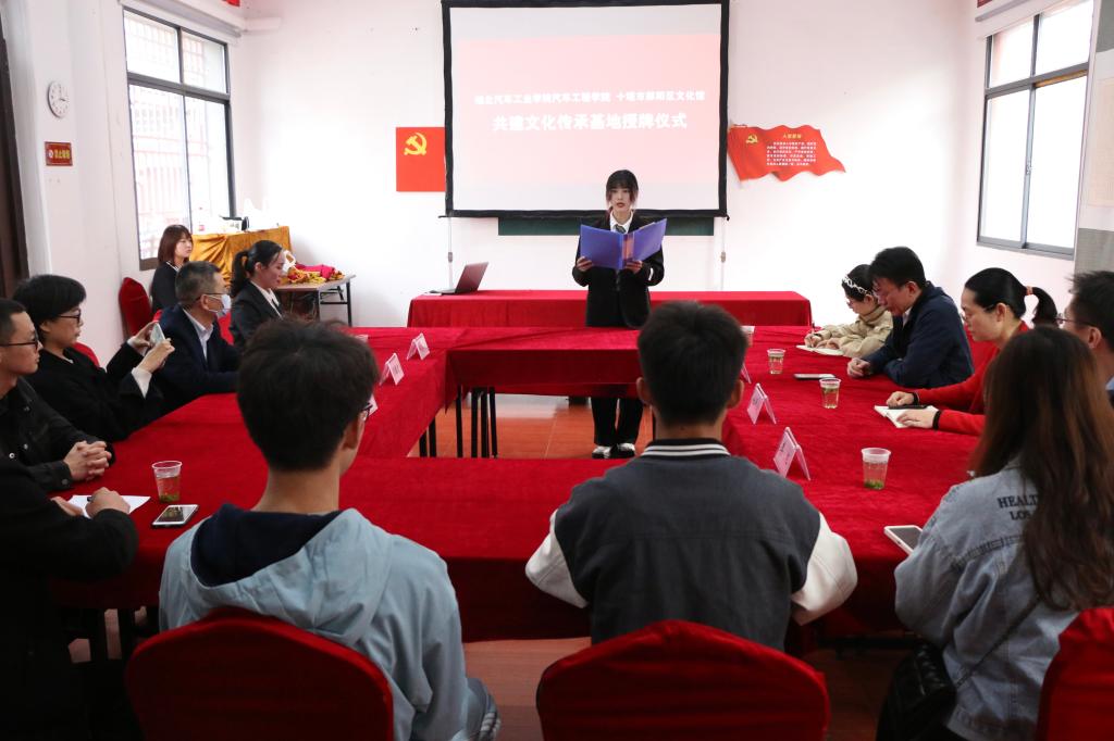 为了深入发扬中华民族的传统文化,领略非物质文化遗产汇聚之下的强大感染力。10月27日,bw必威西汉姆联官方网站“老员工社会教育实践基地”授牌仪式在十堰市郧阳区文化馆举行。郧阳区文旅局副局长闫国才、文化股股长丁静玉、文化馆馆长田英鸥、凤凰灯舞传承人史清,bw必威西汉姆联官方网站分党委书记李秀峰、副书记杜昕俊、辅导员李键雯、李旭等人共同出席授牌仪式。