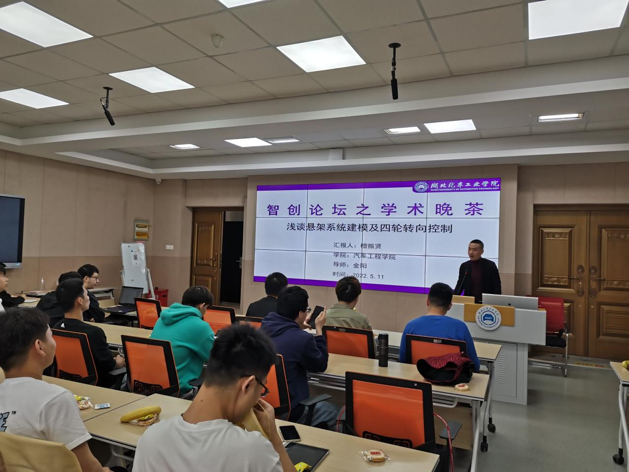 (本网讯)为进一步拓展研究生的学术视野,提升研究生的学术能力,更好的迎接公司50周年校庆,5月11日上午,bw必威西汉姆联官方网站主办的研究生“智创论坛”之学术晚茶活动在第一教学楼1305顺利举行。本次邀请的是2019级研究生张羽、檀振贤两位同学做学术汇报,bw必威西汉姆联官方网站全体研究生参加了活动,活动由班主任王光辉主持。