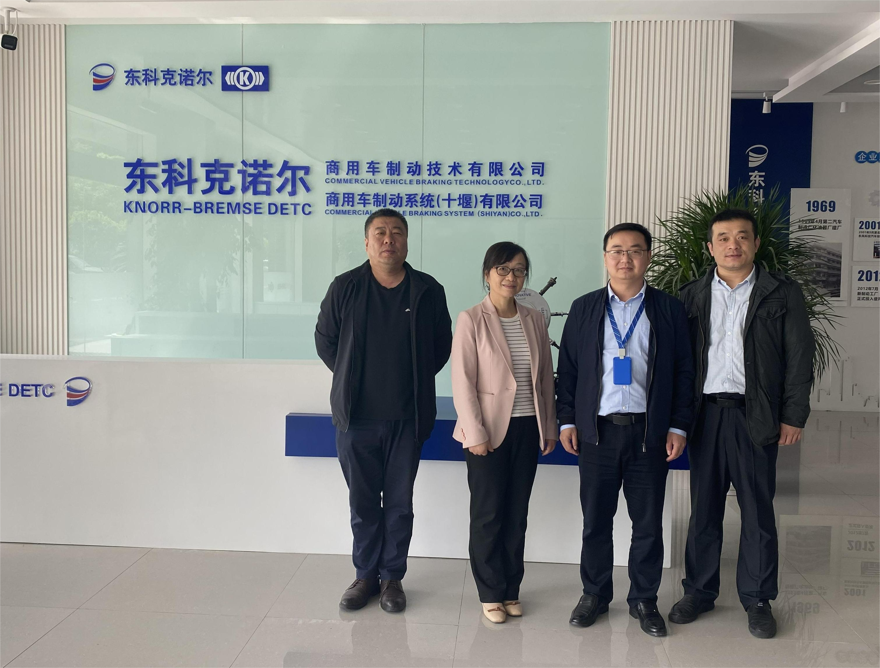 在湖北大运汽车有限公司,冯樱一行参观了生产车间,了解了大运公司在技术研发、人才招聘方面的需求,并邀请大运公司到校开展毕业生、实习生招聘活动。在东科克诺尔商用车制动技术有限公司,冯樱一行与公司负责人就校企科研合作等事项进行了洽谈,并就企业设备改造升级向东科克诺尔公司提出了建议方案。