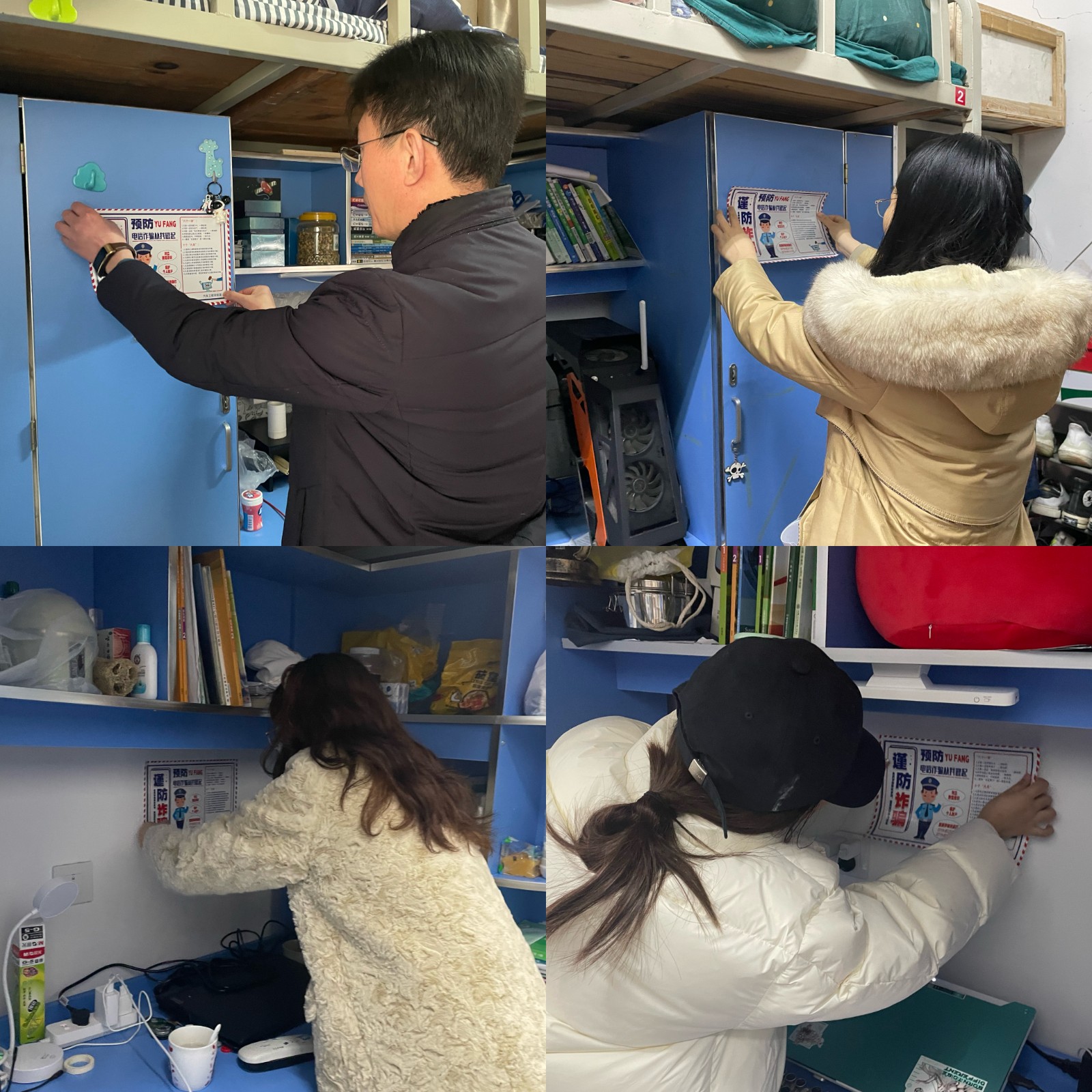 为进一步加强毕业生电诈防范意识,李秀峰带领全体辅导员为每一个毕业生宿舍张贴防电诈警示小贴士,再三提醒毕业生在求职期间提高风险防范意识,仔细辨别网络招聘信息,谨防落入各种就业陷阱,确保人身和财产安全。