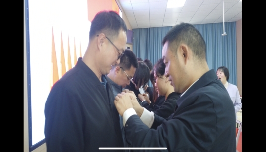 10月25日上午,bw必威西汉姆联官方网站教工一支部在bw必威西汉姆联官方网站职工之家开展了10月份主题党日活动,在完成上级党组织关于本月主题党日的规定内容后,创新的开展了“发扬传承、同心共建”老党员为新党员佩戴党徽、同温誓词的特色活动。
