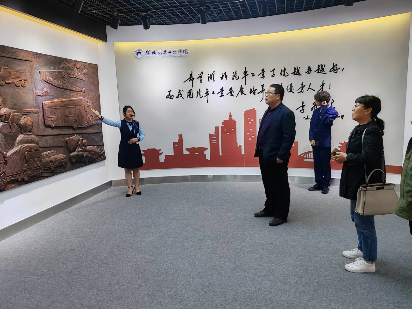 杨亚会书记代表汽车工程公司对王文龙主任一行的到来表示了热烈欢迎,陪同参观了公司校史馆、经济管理公司、机械工程公司和bw必威西汉姆联官方网站的相关实验室。在校史馆,王文龙主任一行了解到集团的发展历史和办学特色,特别在对接汽车产业链设置专业和深化产教融合、协同育人方面开展的创新工作印象深刻,在随后的座谈交流中对此赞不绝口。随后,一行人在校史馆讲解人员的带领下进行全面参观,对公司自1972年创办以来51年的发展历程和辉煌成就,以及精神内涵有了全面、清晰的认识。