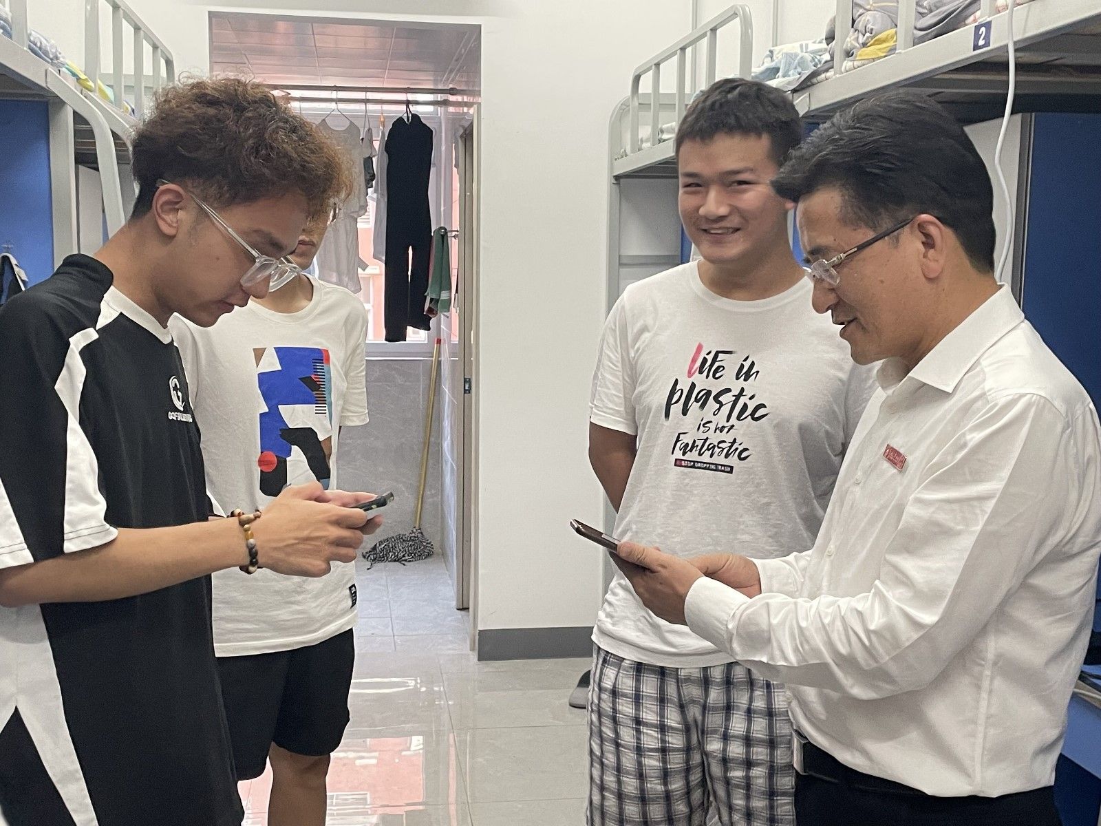 集团领导集体走访2023级新生宿舍虽然过去了好几天,但新生们对校领导的走访仍然印象深刻,时不时还会谈论起校领导的亲切,校领导的关怀。