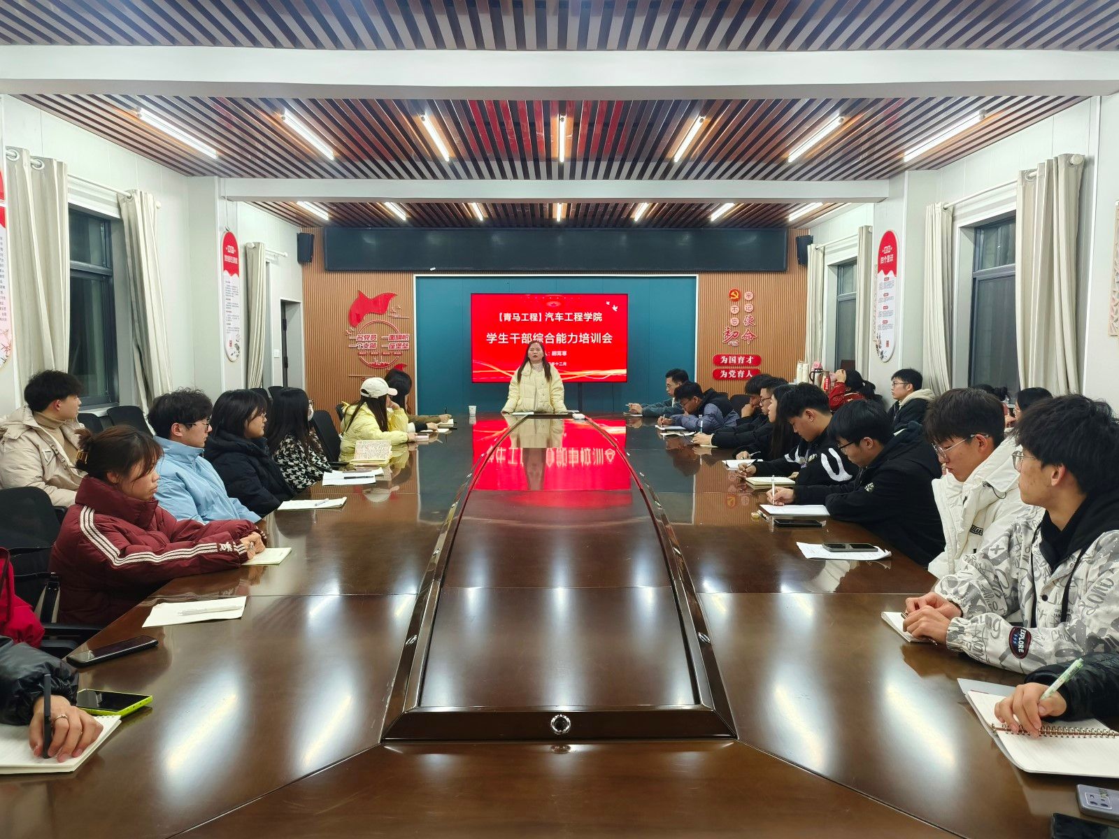 本网讯(文/詹昊、甘甜)为进一步推动本院员工工作向上向好发展,提高员工干部综合能力。12月12日至13日期间,bw必威西汉姆联官方网站在二楼会议室开展了员工会干部能力素质提升培训会,学工办主任胡霄寒、辅导员甘甜担任主讲。