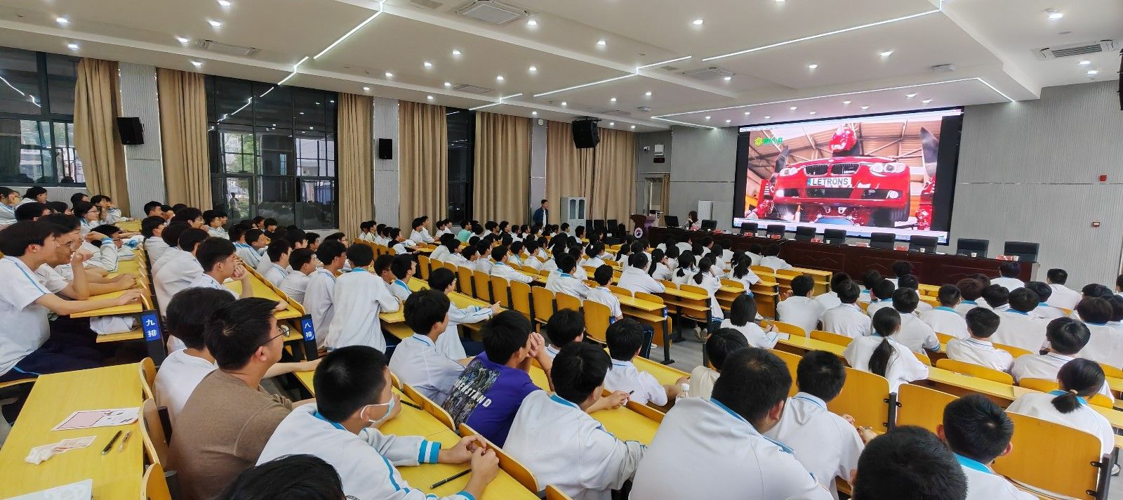 章菊用一段公司东风HUAT赛车在赛场轰鸣驰骋的宣传片为引子,全面介绍了公司的办学特色、专业设置、团队队伍、实践平台、校园环境、就业前景等情况。随后结合国内外前沿汽车技术以《改变世界的机器—汽车文化探秘》为题,为参会员工开展了一堂生动的科普宣讲,介绍了汽车文化启蒙知识,并将公司办学特色融入宣讲中,员工反应热烈。活动现场还播放了公司的宣传片、发放了招生宣传手册。(审稿 周彬)