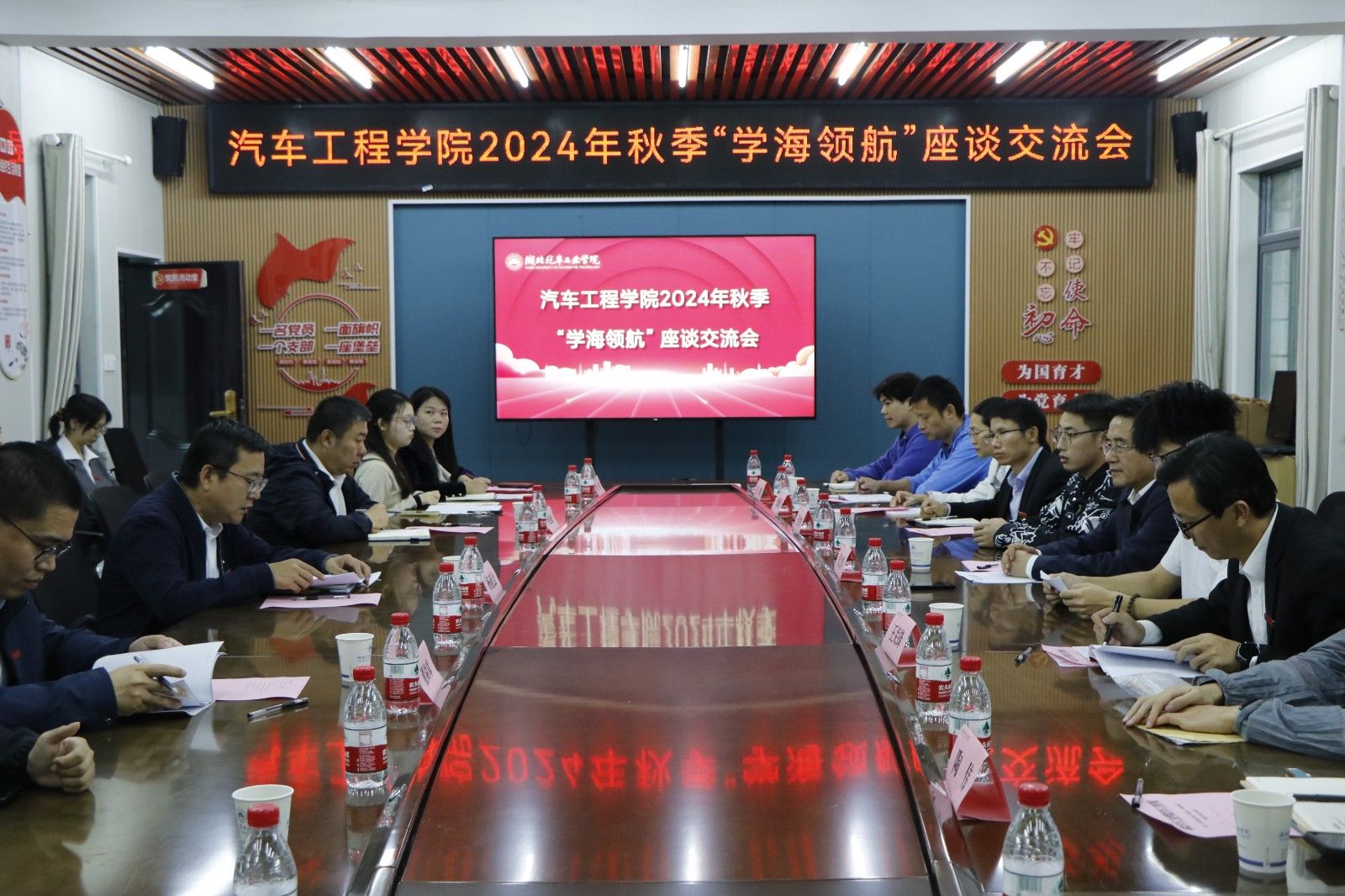 揭牌仪式后,张文学一行还参加了2024年秋季“学海领航”座谈交流会,13名结对员工参加座谈会。张文学指出,结对领导干部要以高度的政治自觉、强烈的师生观念,认识联系结对工作,全面下沉员工一线,形成全员、全过程、全方位育人的新格局;要以扎实的一线服务,有效的帮扶力度,开展联系工作,将“学海领航”活动与“一站式”员工社区建设有机结合、统筹开展;要以坚强的责任担当,严真细实快的工作作风,抓实联系工作,通过座谈交流、谈心谈话、走访宿舍、参加活动、一线听课等多元化方式,当好“示范员”“宣讲员”“调研员”“指导员”和“办事员”。