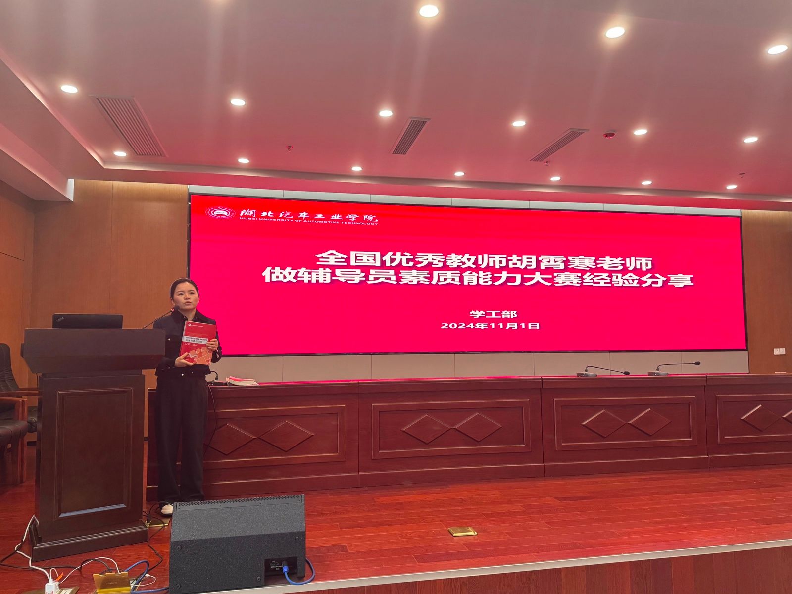 胡霄寒结合自己多年来的辅导员工作经验,从校赛和省赛笔试环节的题型分析、理论基础知识复习的“三个思路”、辅导员职业发展的需要和思政能力提升的进阶四个方面进行了情真意切的分享。她说,辅导员素质能力大赛是辅导员个人成长的“加油站”,是反哺一线思政育人工作的“能量棒”,是辅导员提升职业认同感、找到集体归属感的“稳压器”。她建议辅导员们一是做“时间管理大师”,利用早中晚碎片化时间循序渐进复习,在日常工作中注重阅读积累各类政策文件,灵活运用理论知识,让理论知识在潜移默化中入脑入心;二是有“主次矛盾思维”,抓重点、抓热点,用“数字”辅助理解,将大赛作为日常工作的检验平台。最后她还向全体辅导员推荐了《从“知道”到“做到”》和《新时代高校辅导员素质能力提升方法与路径研究》两本必读的书籍。