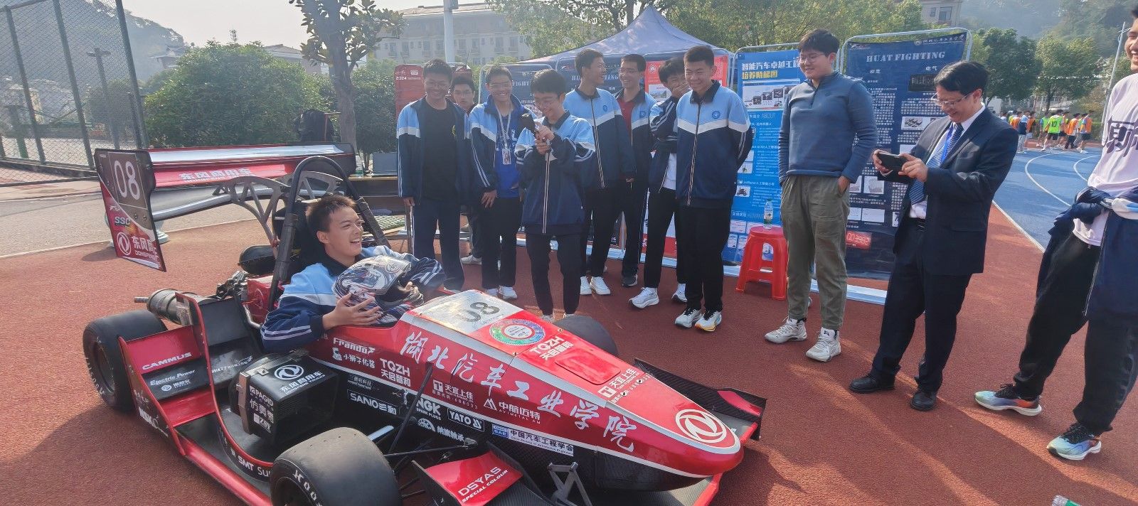 应长阳土家族自治县第一高级中学邀请,11月5日上午,bw必威西汉姆联官方网站分党委副书记周彬率东风HUAT老员工方程式赛车队师生一行7人,参加该校第51届田径运动会暨第11届科技艺术节开幕式。