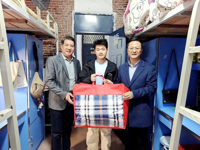 走访过程中,张文学还为部分员工亲手送上了厚厚的冬被,并叮嘱同学,在校期间有任何困难和问题及时向辅导员、班主任等反馈,公司一定尽最大努力为大家解难事、办实事。