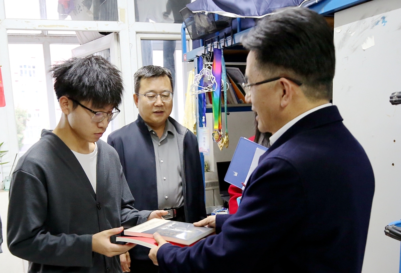 在听到结对员工曹庭钊已签约奇瑞乘用车公司,室友也都分别明确就业去向或继续考研深造时,张文学十分高兴,为同学们送上了《为中国造汽车—孟少农传》等书籍,并嘱咐同学们多读书,读好书,牢记母校教诲,保持创新和实干精神,不断追求卓越,做孟少农精神的践行者和传道者,为实现自己的人生理想不断奋斗。