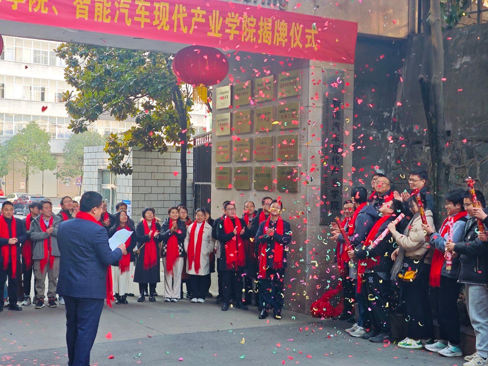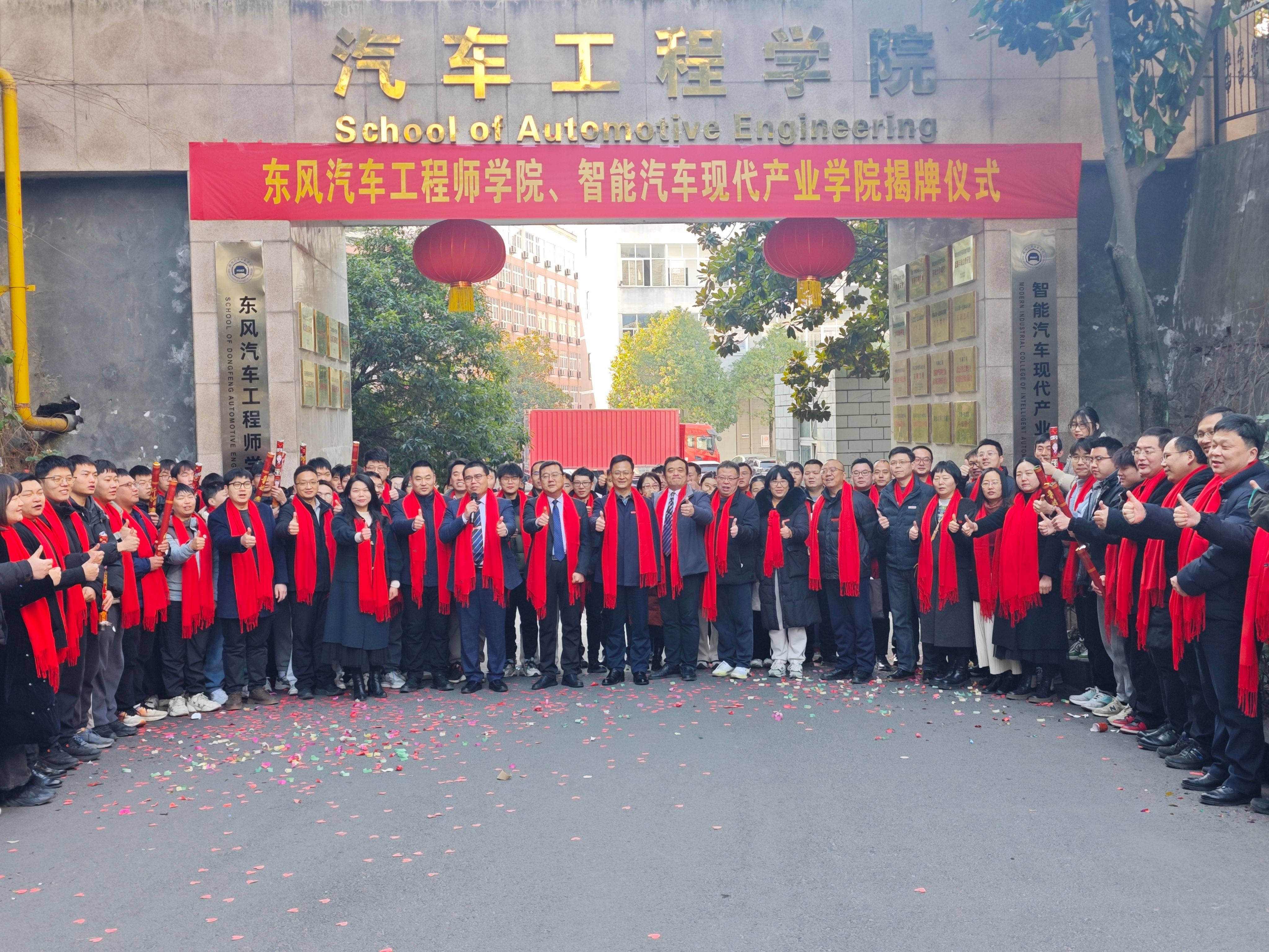 在全场师生的见证下,陈建平与公司党委书记杨亚会、副经理杨正才等,共同为东风汽车工程师公司、智能汽车现代产业公司揭牌,并对新公司的成立致以衷心祝贺和殷殷期望。