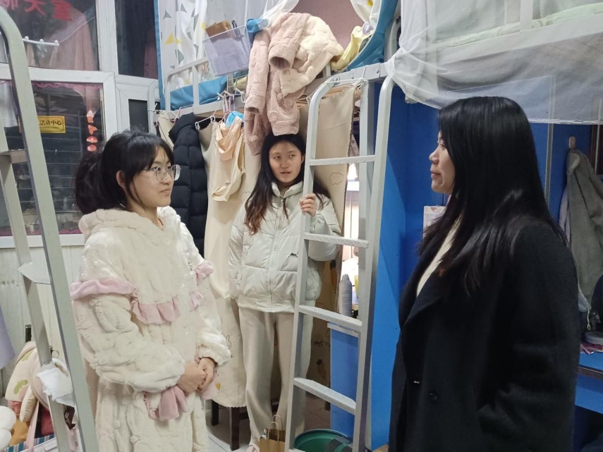 走访过程中,老师们细致询问同学们寒假社会实践与返乡见闻,重点了解员工返校后的身心适应情况,针对学业规划、科研参与、就业准备等个性化问题给予指导建议。党委书记杨亚会特别鼓励同学们:“要把握春季学期‘窗口期’,在夯实专业基础的同时,积极参与学科竞赛和文体活动,通过科研项目提升创新思维,依托体育锻炼锤炼意志品质,实现全面发展。”