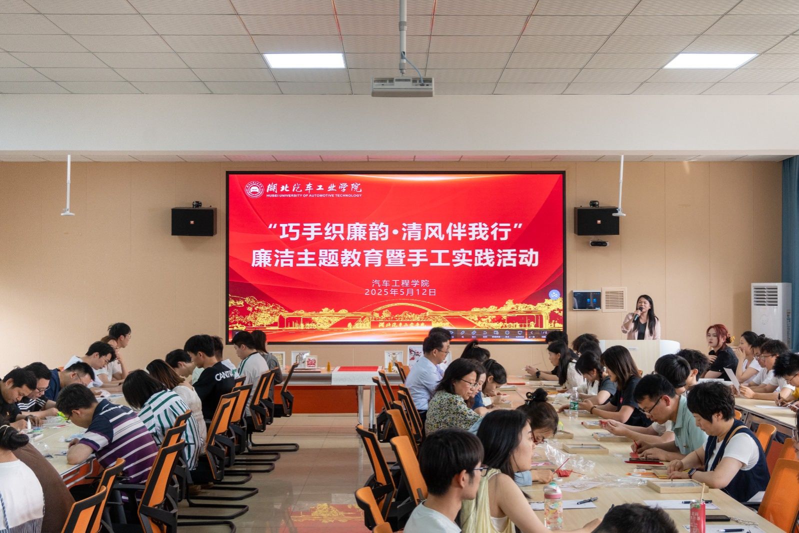 “手工实践是载体,廉洁育人才是内核。”为进一步强化党员干部的廉洁意识,在欣赏完师生们的廉洁作品后,杨亚会围绕“违规吃喝”进行解读,为党员师生讲授专题党课,警示党员师生要做到“心有所畏、行有所止”。杨亚会指出,全体党员要时刻保持清醒头脑,时刻绷紧廉洁自律这根弦,永葆清正廉洁的政治本色。