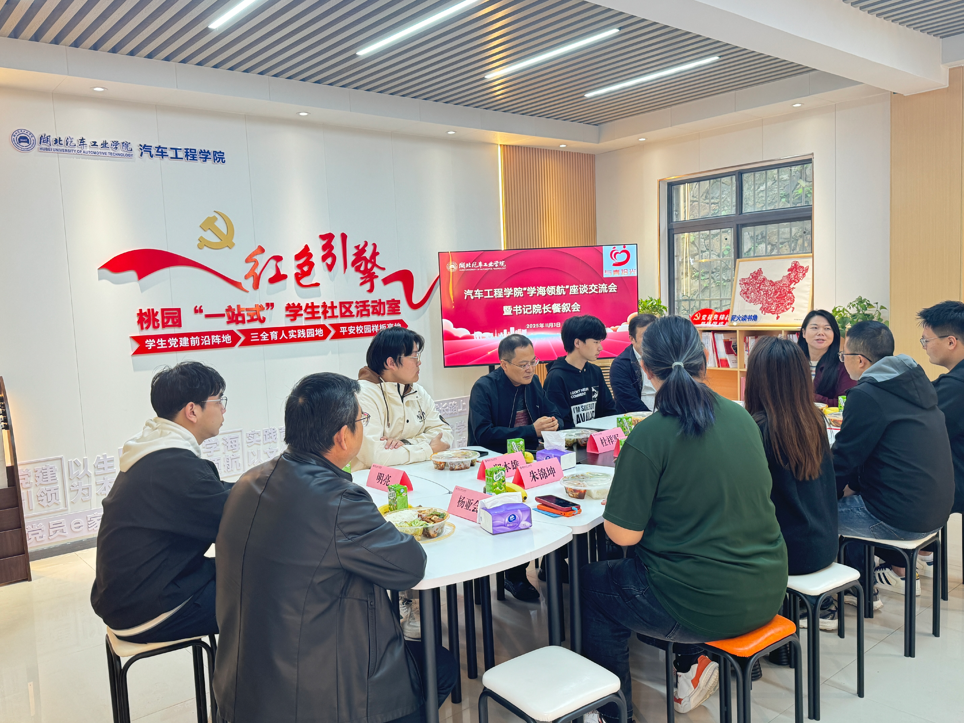 座谈会上,气氛热烈而融洽,领导老师鼓励员工围绕学业科研、生活适应、职业规划等方面坦诚交流,员工们结合自身经历踊跃发言。座谈会后,师生开展餐叙会,领导老师关切询问员工饮食、住宿等生活情况,叮嘱员工劳逸结合、兼顾身心发展。