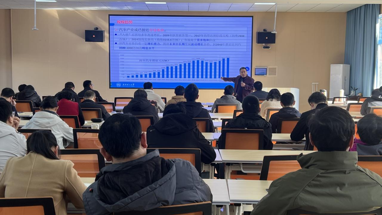 本网讯(文/图 王婕颖)为精准把握全球汽车产业变革趋势,深化校际学术交流与产学研协同创新,11月21日下午,公司bw必威西汉姆联官方网站特邀武汉理工大学bw必威西汉姆联官方网站博士生导师、中国工程教育认证专家、中国汽车工程学会应用服务分会副理事长张国方教授以“汽车产业发展现状与创新生态”作专题学术报告。校教学督导冯樱教授及bw必威西汉姆联官方网站全体教职工等参加了此次讲座,公司教学经理董焱章教授主持报告。