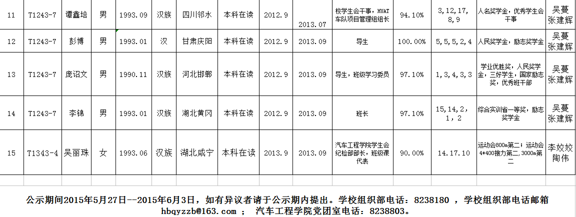 2015年6月份拟发展员工预备党员预审情况公示