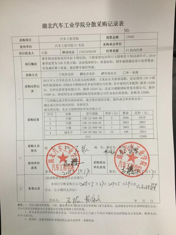 F1车队制动卡钳分散采购公示