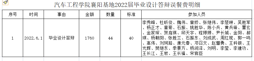bw必威西汉姆联官方网站襄阳基地2022届毕业设计答辩午餐费明细