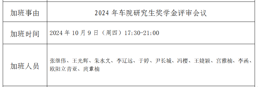 2024年车院研究生奖学金评审会议加班误餐公示