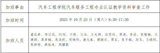 bw必威西汉姆联官方网站汽车服务工程专业认证教学资料审查工作误餐公示