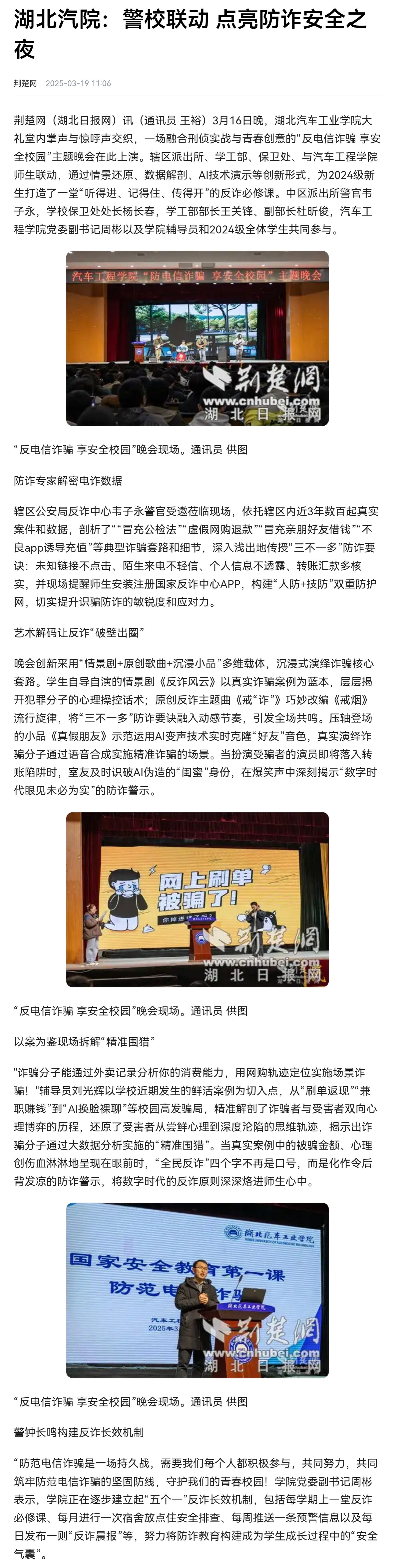 【荆楚网】湖北汽院:警校联动 点亮防诈安全之夜