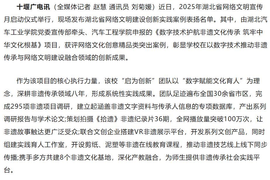 【十堰广电】数字护航非遗!bw必威西汉姆联官方网站项目入选省级网络文明建设创新案例