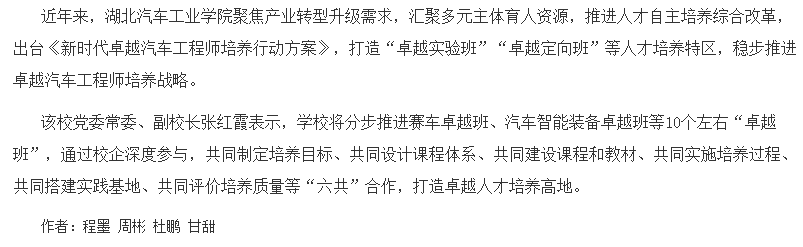 【中国教育报】湖北汽院:“少农班”探索校企协同育人新模式