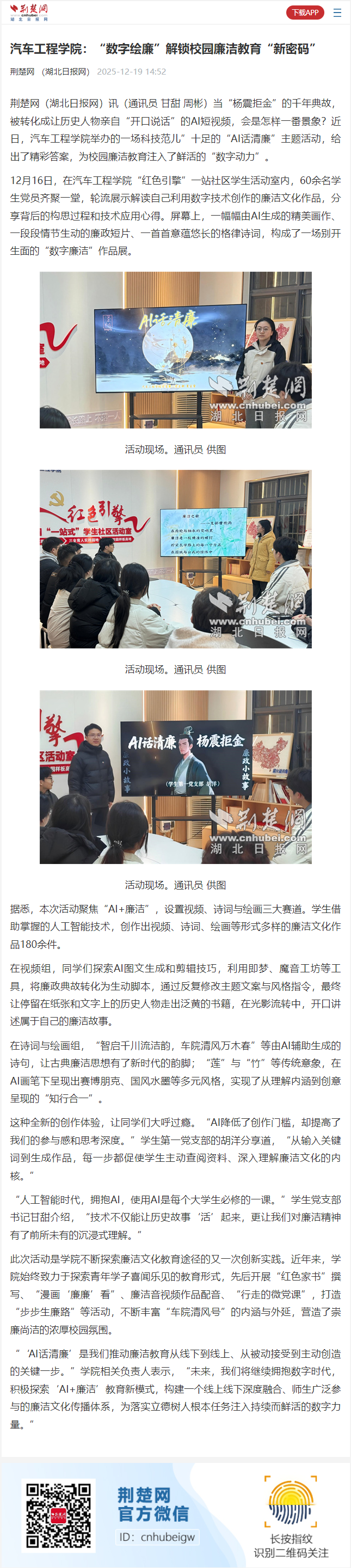 【荆楚网】bw必威西汉姆联官方网站:“数字绘廉”解锁校园廉洁教育“新密码”