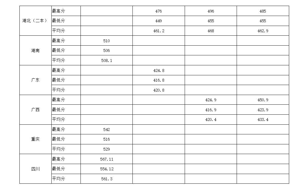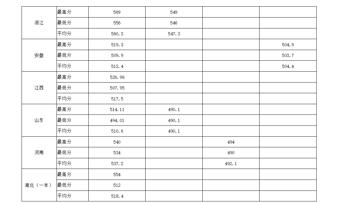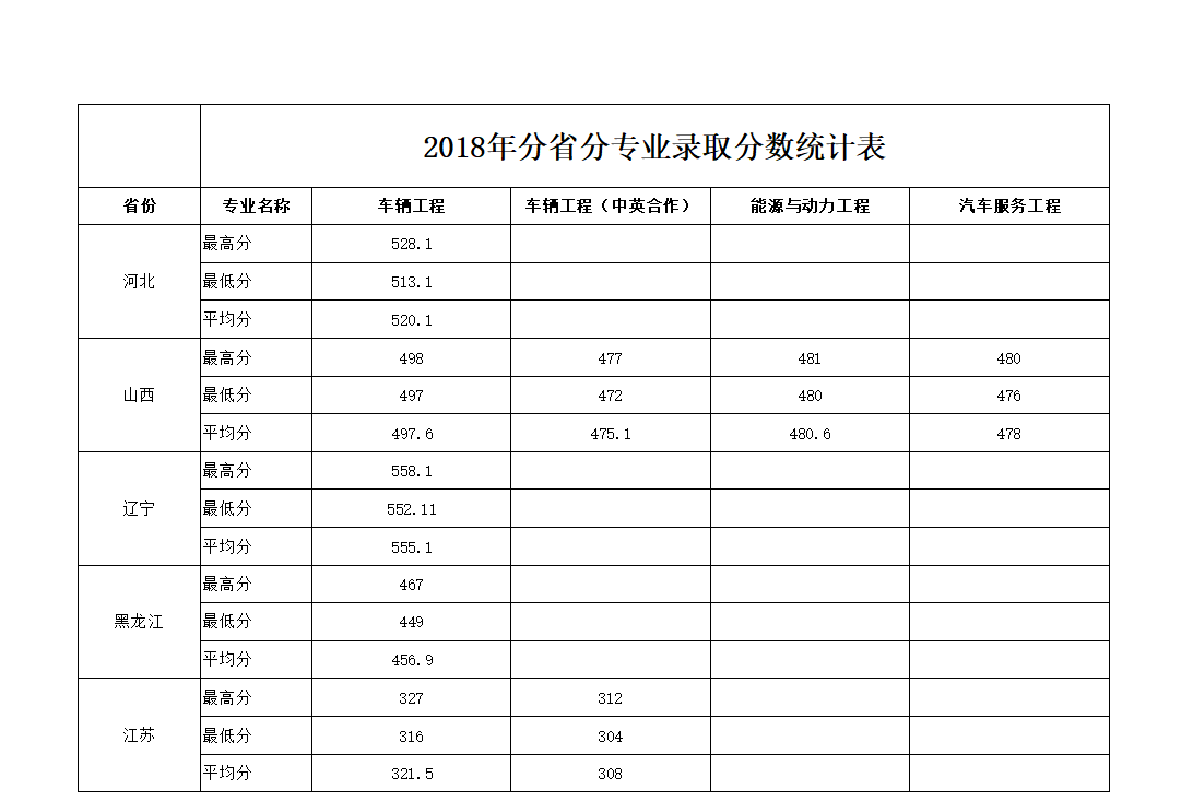 2018年分省分专业录取分数统计