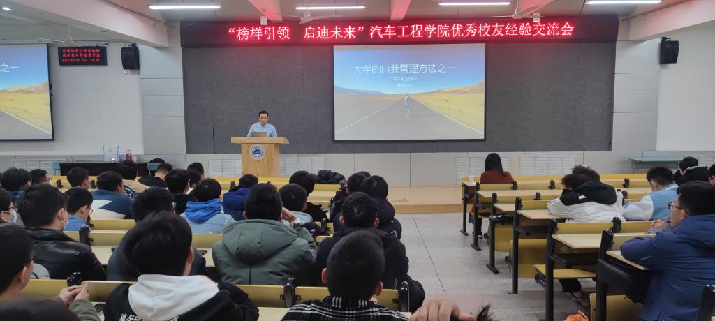 王维平2004年入读汽院,2008年作为第一人参加集团与德国乌尔姆应用科技大学的本科双学位交换项目;本科毕业后继续在乌尔姆应用科技大学攻读研究生;其目前在奥迪中国企业管理有限公司从事电子电气规划和诊断相关的工作。王维平首先结合自己在大学时的困惑向大家提出了中肯的建议;随后,王维平结合自身的大学成长经历,与大家分享了“PDCA自我管理方法”与职业生涯规划的感悟。“同学们要立志成为兼具宽口径知识储备与专业技能过硬的T型人才,在大学四年里着重培养锻炼自身的汇报表达能力、项目管理能力、前瞻性思考能力等素质。”